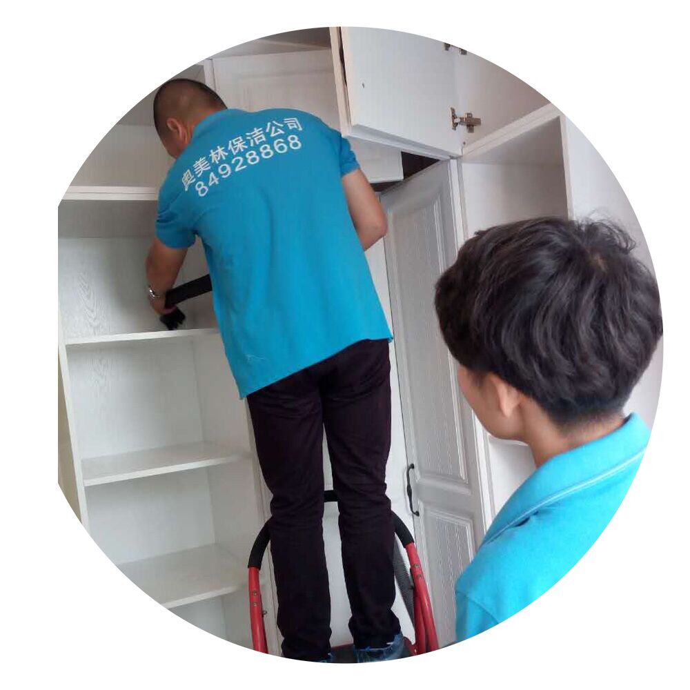 擦玻璃(里外)、全面牽塵、清洗地面、廚廁除污消毒、裝修痕跡清理、家具的擦拭等全方位的保潔服務。